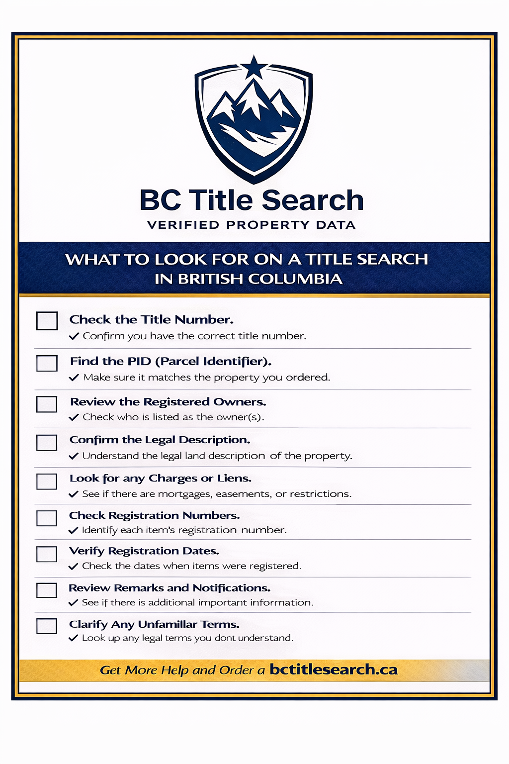 A BC land title search is the process of confirming legal ownership of a property and identifying any registered interests affecting the land. This includes mortgages, liens, easements, rights-of-way, and other encumbrances that may impact the property. As a result, a title search allows you to clearly understand what is legally attached to a property before making a decision.