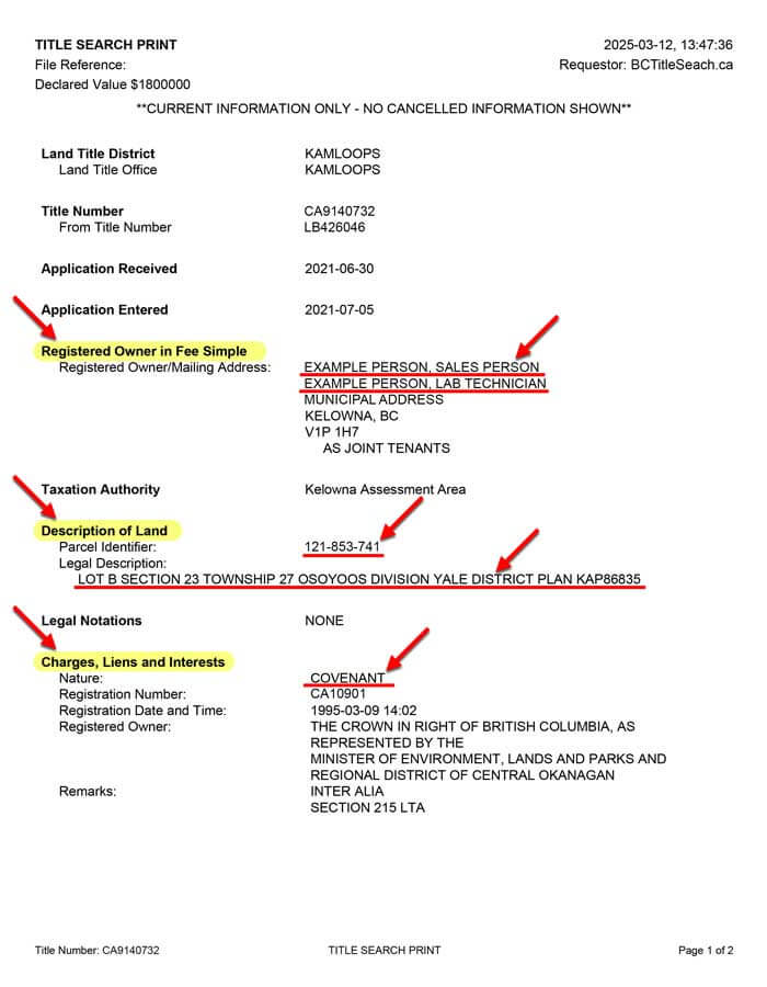 Title documents are official BC property records that establish: