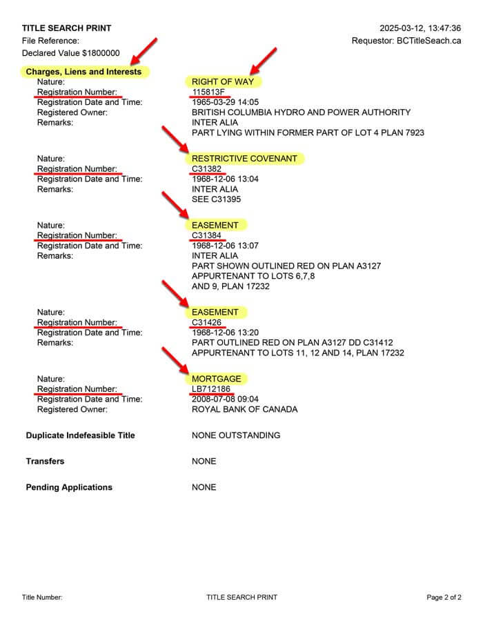 A comprehensive review of BC property records to confirm: